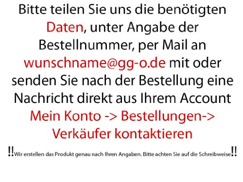 Bei der Bestellung wird der gewünschten Namen und das Geburtsjahr, unter Angabe der Bestellnummer per Mail, übermittelt.